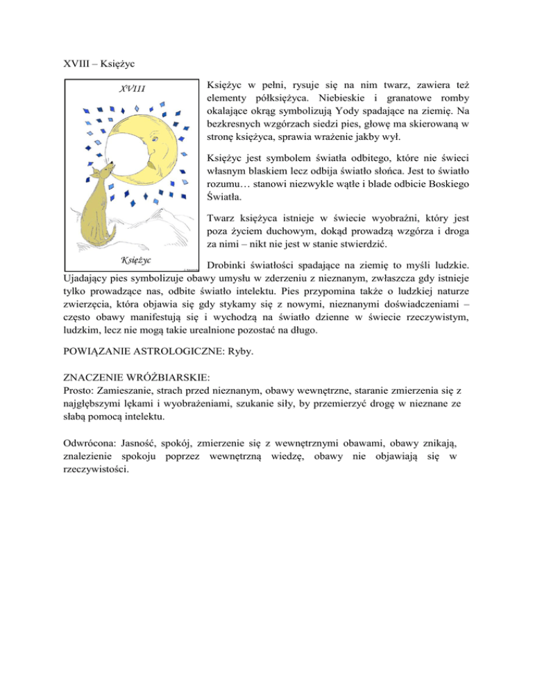 XVIII – Księżyc Księżyc w pełni, rysuje się na nim twarz, zawiera też