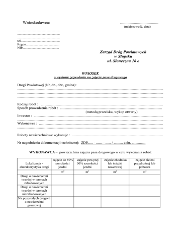 zajęcie pasa - Zarząd Dróg Powiatowych w Słupsku