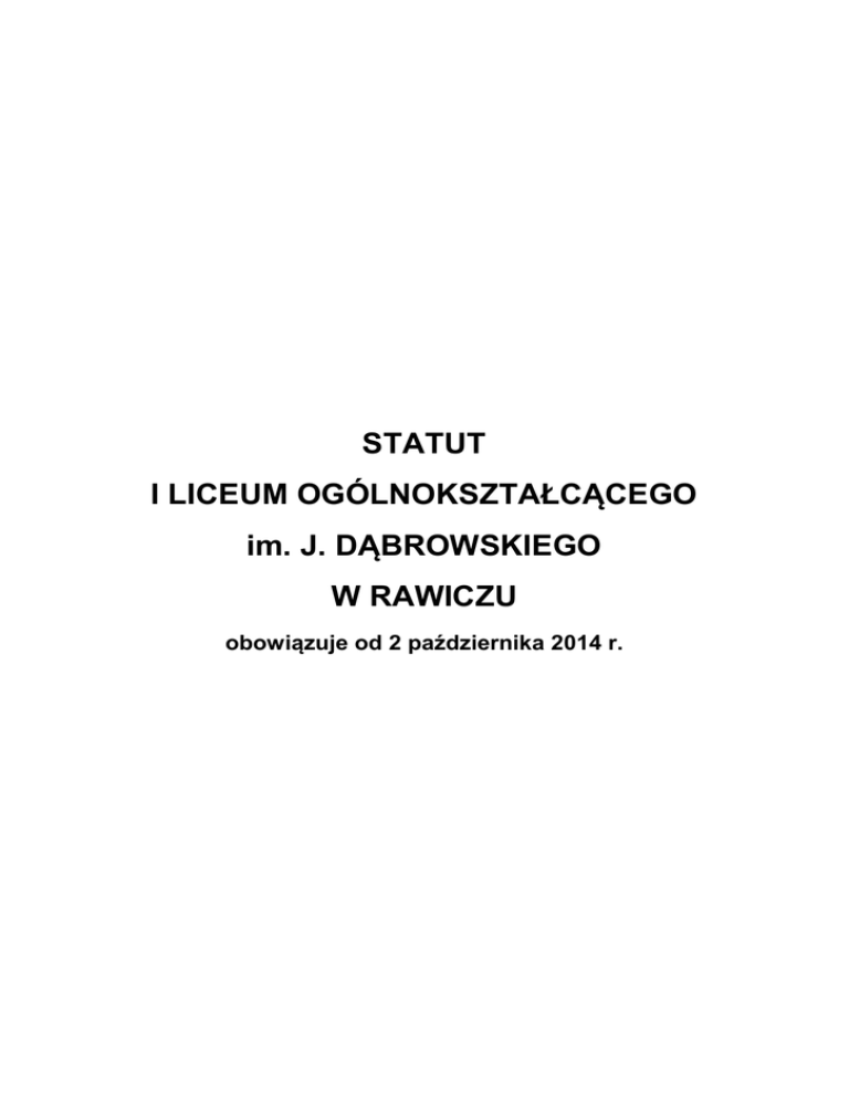 STATUT I LICEUM OGÓLNOKSZTAŁCĄCEGO im. J