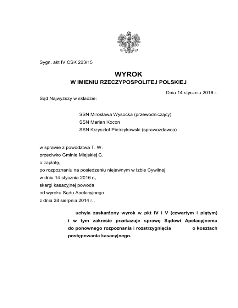 wyrok Sądu Najwyższego z dnia 14 stycznia 2016 r., IV