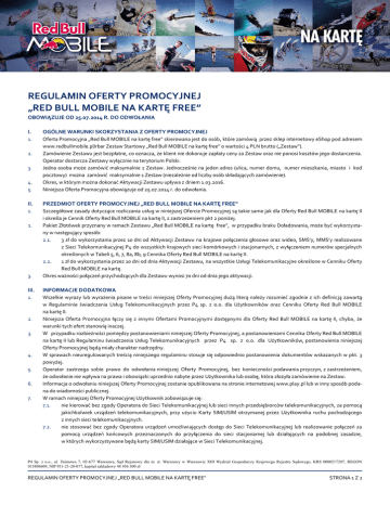 Regulamin Oferty Promocyjnej Red Bull MOBILE na kartę free