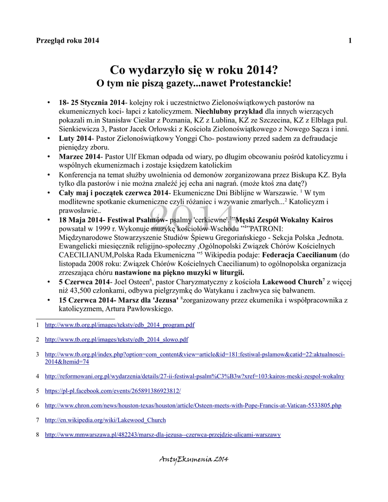 Co wydarzyło się w roku 2014? - Antyekumenia