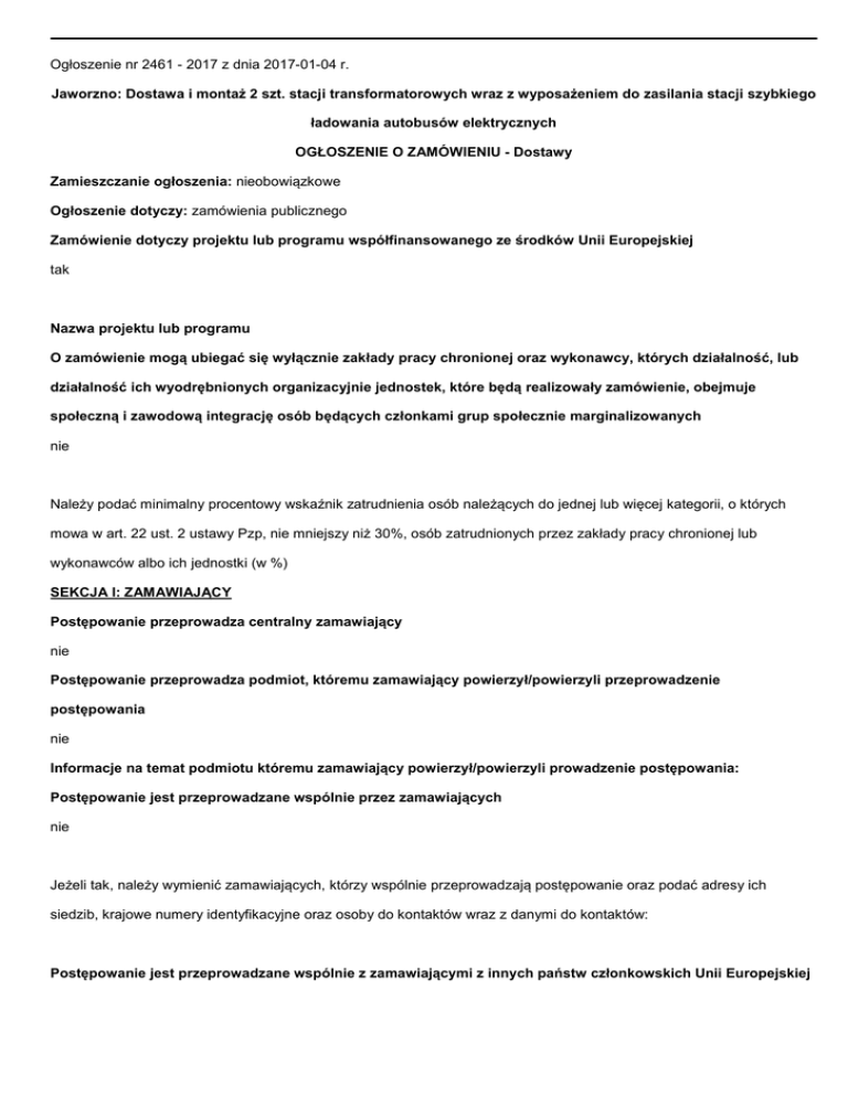 Ogłoszenie nr 2461 - 2017 z dnia 2017-01