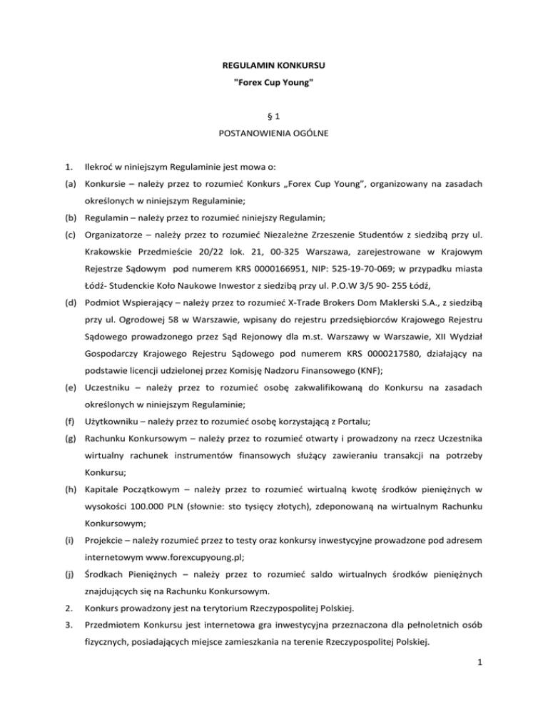 1 REGULAMIN KONKURSU "Forex Cup Young" § 1