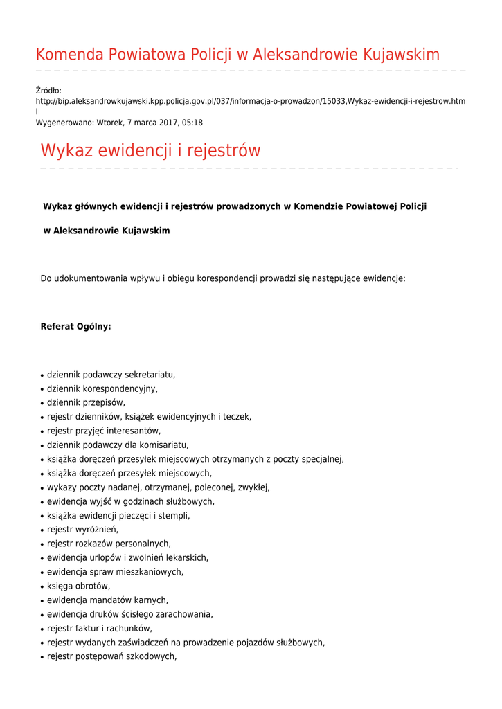 Wykaz ewidencji i rejestrów - Komenda Powiatowa Policji w