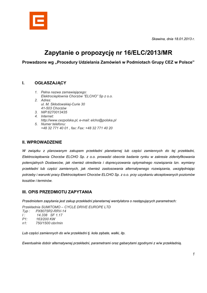 RFP 16_ELC_2013_MR zakup przekładni lub części