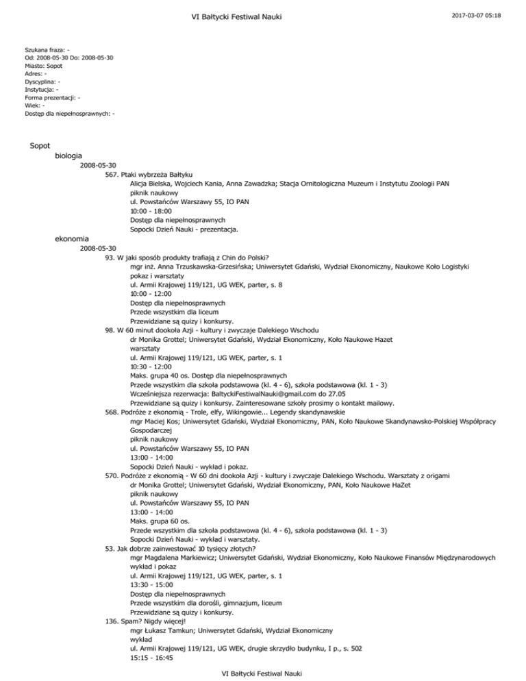 Sopot biologia ekonomia VI Bałtycki Festiwal Nauki