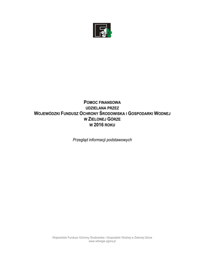 W 2016 ROKU - WFOŚiGW w Zielonej Górze