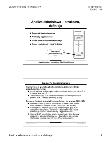 Gramatyki LL umo liwiaj analiz składniow od góry w dół zaczynamy od symbolu startowego i dochodzimy do zdania