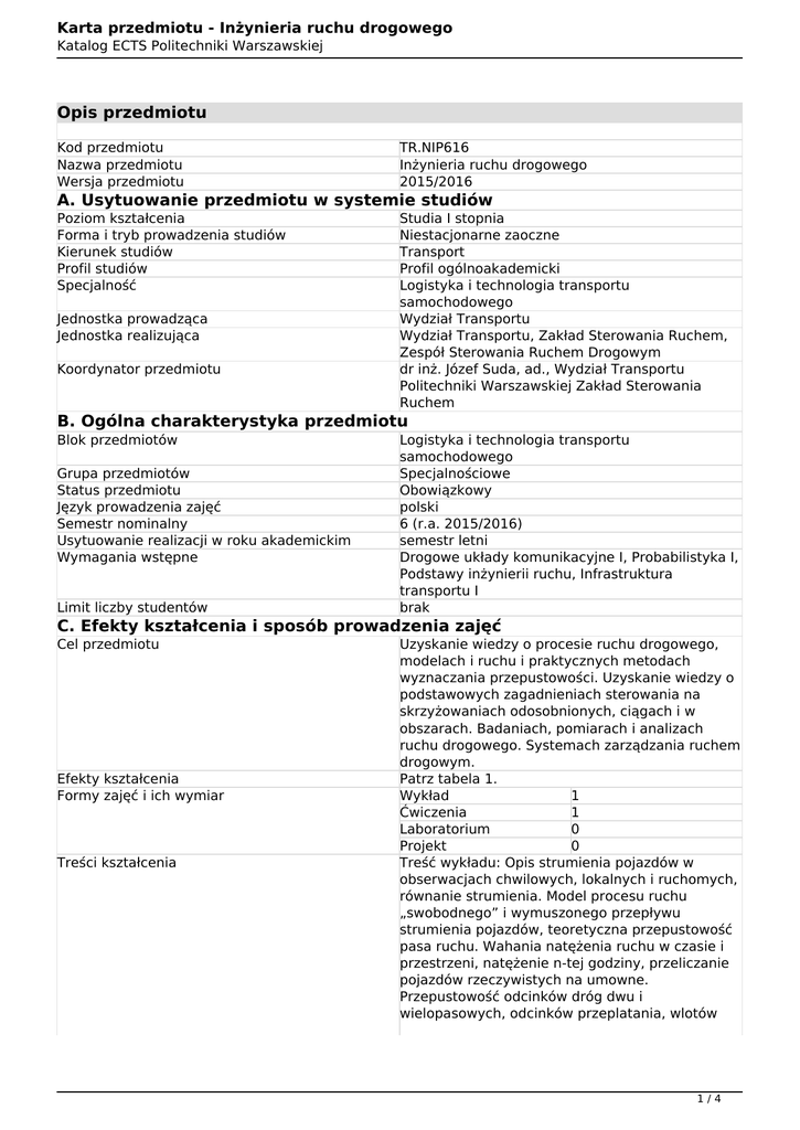 Karta przedmiotu - Wydział Transportu Politechniki Warszawskiej