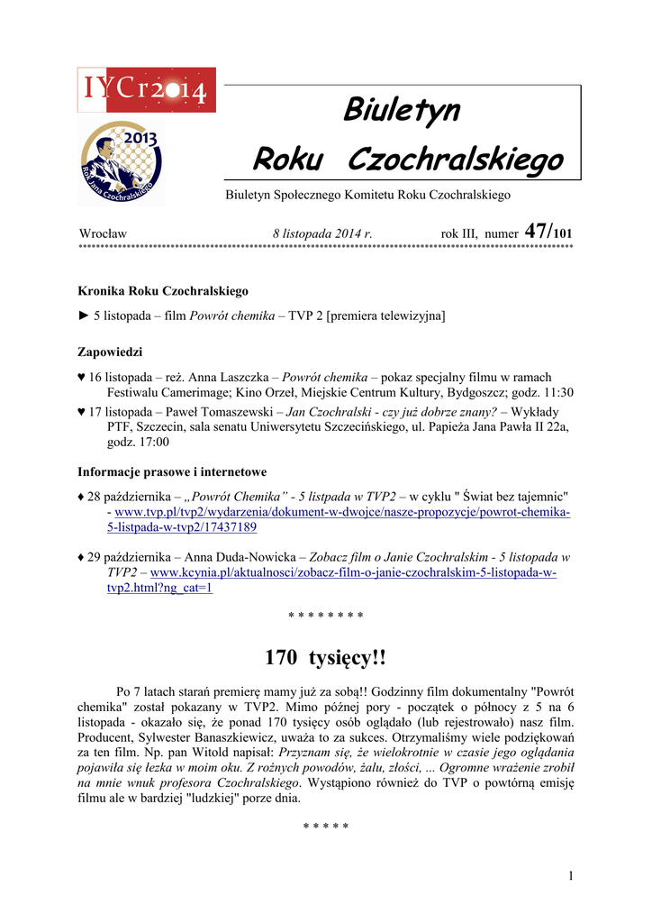 Biuletyn 47-2014 - Jan Czochralski