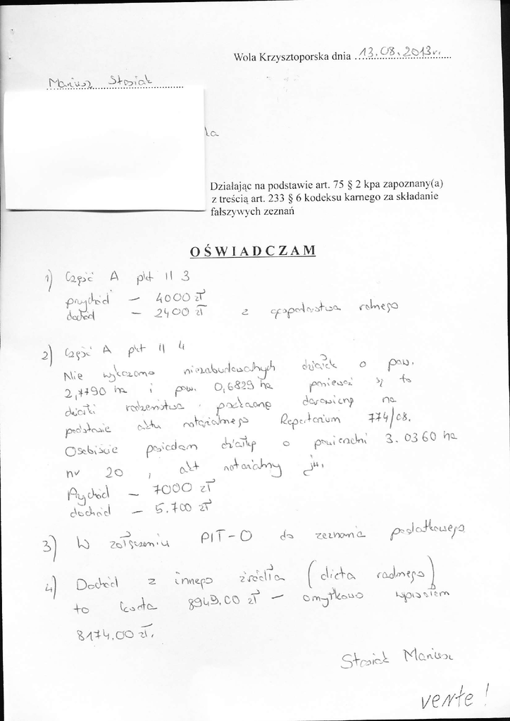 wyjaśnienie do oświadczenia - BIP Gmina Wola Krzysztoporska