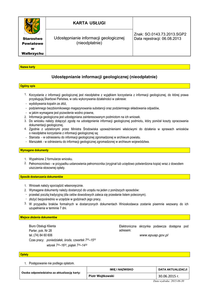 KARTA USŁUGI Udostępnianie informacji geologicznej