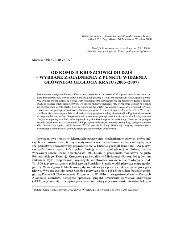 GDPL .RPLVMD .UXV]FRZD SRZRáDQD Z GQ U SU]H] NUyOD 6WDQLVáDZD $uJXVWD 3RQLDWRZVNLHJR SHáQLáD ]DGDQLD VáX*E\ JHRORJLF]QHM ] ZD*Q\PL HOHPHQWDPL GRW\F]F\PL JyUQLcWZD 'ODWHJR PR*QD X]QDü *H 3ROVND WUDG\FMD JHRORJLF]QRJyUQLF]D PR*H VL