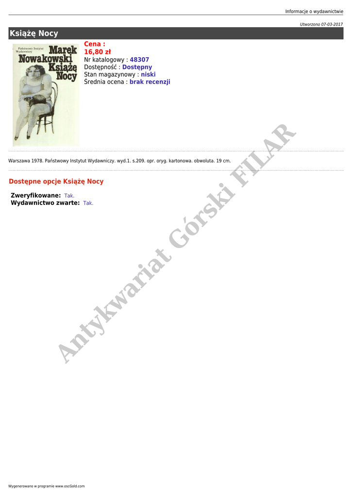Informacje o wydawnictwie Utworzono 07-03-2017 Książę Nocy Cena : 16,80 zł FI Warszawa 1978. Państwowy Instytut Wydawniczy. wyd.1. s.209. opr. oryg. kartonowa. obwoluta. 19 cm. Dostępne opcje Książę Nocy An ty k w ar ia t G ór sk i Zweryfikowane: Tak. Wydawnictwo zwarte: Tak. Wygenerowano w programie www.oscGold.com LA R Nr katalogowy : 48307 Dostępność : Dostępny Stan magazynowy : niski Średnia ocena : brak recenzji