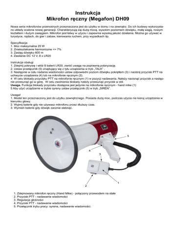 Instrukcja Mikrofon ręczny (Megafon) DH09