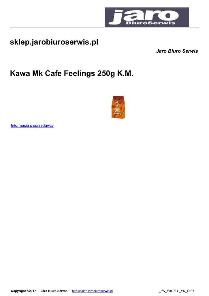sklep.jarobiuroserwis.pl Jaro Biuro Serwis Kawa Mk Cafe Feelings 250g K.M. Informacja o sprzedawcy Copyright ©2017 - Jaro Biuro Serwis - http://sklep.jarobiuroserwis.pl _PN_PAGE 1 _PN_OF 1