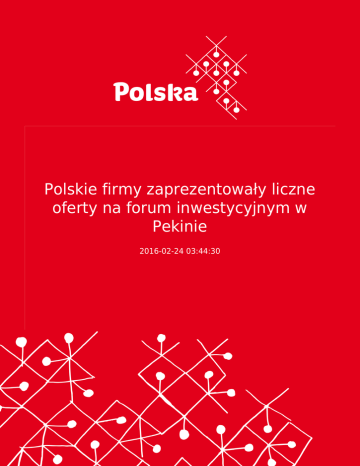 Polskie firmy zaprezentowały liczne oferty na forum inwestycyjnym w Pekinie 2016-02-24 03:44:30 2 Podczas Forum Inwestycyjnego krajów Grupy Wyszehradzkiej, które odbyło się 22 października br. w Pekinie, polskie firmy zaprezentowały liczne oferty inwestycyjne dla chińskich firm. Tematem przewodnim forum była zainicjowane przez chiński rząd idea „Pasa i Szlaku”, która zgodnie z planem ma przebiegać przez kraje Grupy Wyszehradzkiej. Forum zostało otwarte przemówieniami ambasadorów krajów Grupy Wyszehradzkiej w Chinach oraz przedstawicieli Agencji Prasowej Xinhua. Ambasador RP w Pekinie Mirosław Gajewski w swoim przemówieniu podkreślił rolę Polski jako węzła transportowego na szlaku lądowym z Chin do Europy oraz zwrócił uwagę na liczne połączenia kolejowe między Polską a Chinami. Forum zostało podzielone na dwie części – prezentacje projektów przez przedstawicieli z krajów Grupy Wyszehradzkiej oraz sesję spotkań typu business-to-business. Z polskiej strony potencjał inwestycyjny Polski zaprezentowała Pani Mecenas Mirella Lechna - Partner Kancelarii Wardyńscy i Wspólnicy. Prezes Centrum Zaopatrzenia Hutnictwa Pan Józef Węgrzyn natomiast przestawił działalność terminala intermodalnego „Euroterminal Sławków”, który poszukuje partnerów w Chinach. Polska była najliczniej reprezentowanym krajem w sesji business-to-business – z polskiej strony wzięło w niej udział łącznie siedem firm, które przedstawiły gotowe projekty inwestycyjne „nad Wisłą” lub usługi dla inwestorów chińskich. Oprócz wyżej wymienionych wzięli w niej również udział przedstawiciele Biura Pomorskiego w Pekinie, Deloitte, ForCap i PMT Trading. Koncepcja Forum, zgodnie z którą cztery kraje Grupy Wyszehradzkiej zaprezentowały projekty inwestycyjne wzięła się z faktu, że chińskie firmy planujące ekspansję globalną analizują zazwyczaj sytuację w krajach z danego całego regionu. Forum, na które przybyło ok. 200 osób - głównie chińskich firm planujących inwestycje zagraniczne, było zorganizowane przez ambasady krajów Grupy Wyszehradzkiej w Chinach oraz Agencję Prasową Xinhua. Z polskiej strony w przygotowania zaangażowani byli pracownicy WPHI w Pekinie i Wydziału Ekonomicznego Ambasady. Wsparcie organizacji przez Agencję Prasową Xinhua, największą agencję prasową w Chinach, dało możliwość szerszej promocji Grupy Wyszehradzkiej i potencjału inwestycyjnego jej członów w chińskich mediach. Forum obyło się w ramach China Overseas Investment Fair, jednego z najważniejszych wydarzeń z tematyki inwestycyjnej w Chinach. Kraje Grupy Wyszehradzkiej posiadały stoiska targowe, które były odwiedzane przez przedstawicieli chińskich firm przez dwa dni trwania targów (22-23 października). Na stoisku zorganizowanym przez WPHI w Pekinie można były uzyskać informacje nt. wsparcia rządowego dla inwestorów zagranicznych w Polsce, agencji wspierających zagranicznych inwestorów, Specjalnych Stref Ekonomicznych w Polsce itp. 3