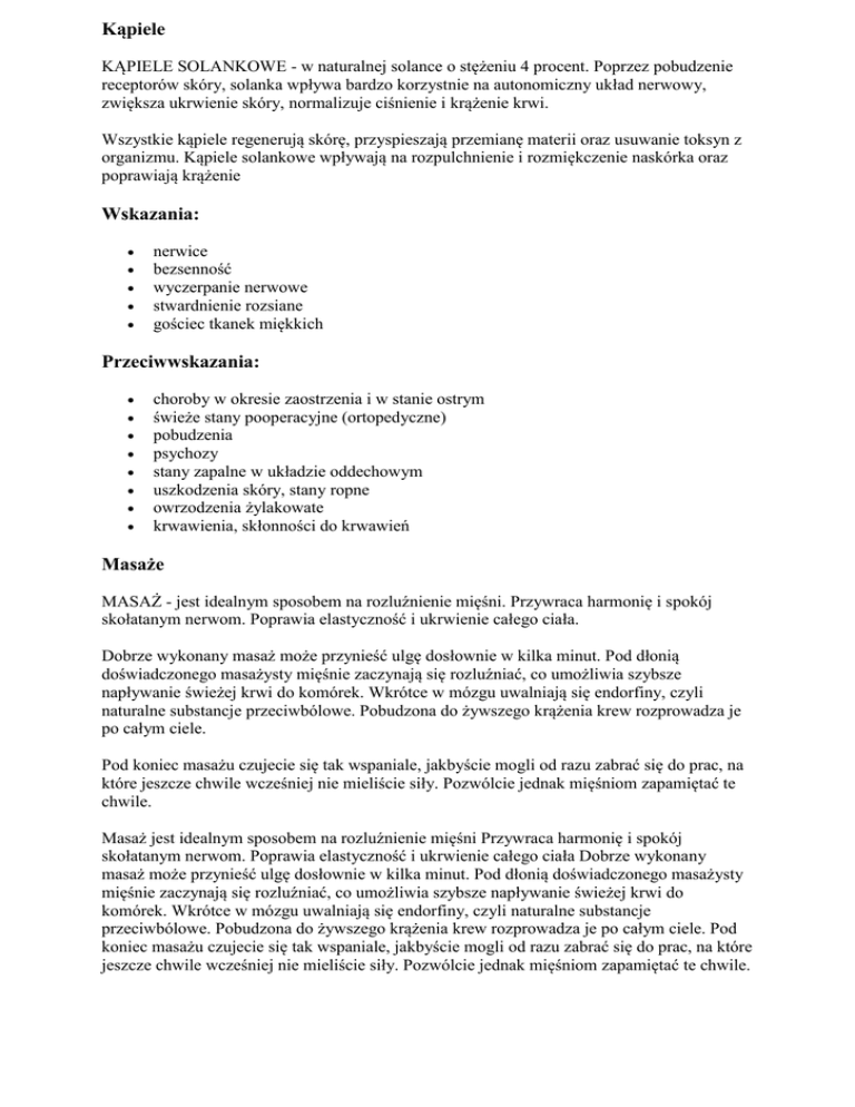 Kąpiele Wskazania: Przeciwwskazania: Masaże