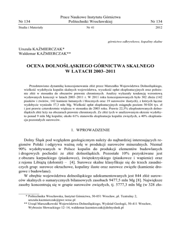 ocena dolnośląskiego górnictwa skalnego w latach