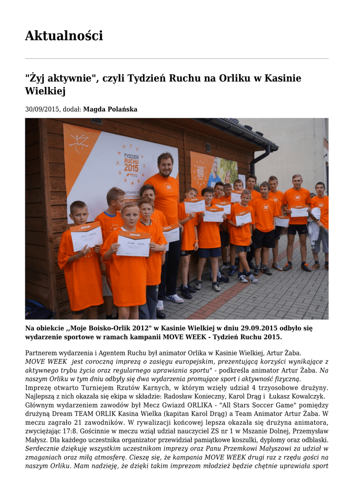 Aktualności "Żyj aktywnie", czyli Tydzień Ruchu na Orliku w Kasinie