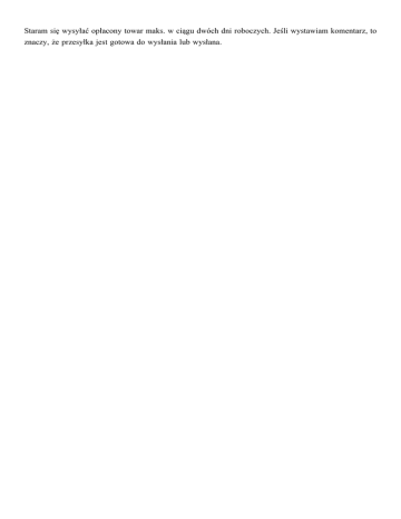Staram się wysyłać opłacony towar maks. w ciągu dwóch dni roboczych. Jeśli wystawiam komentarz, to znaczy, że przesyłka jest gotowa do wysłania lub wysłana.