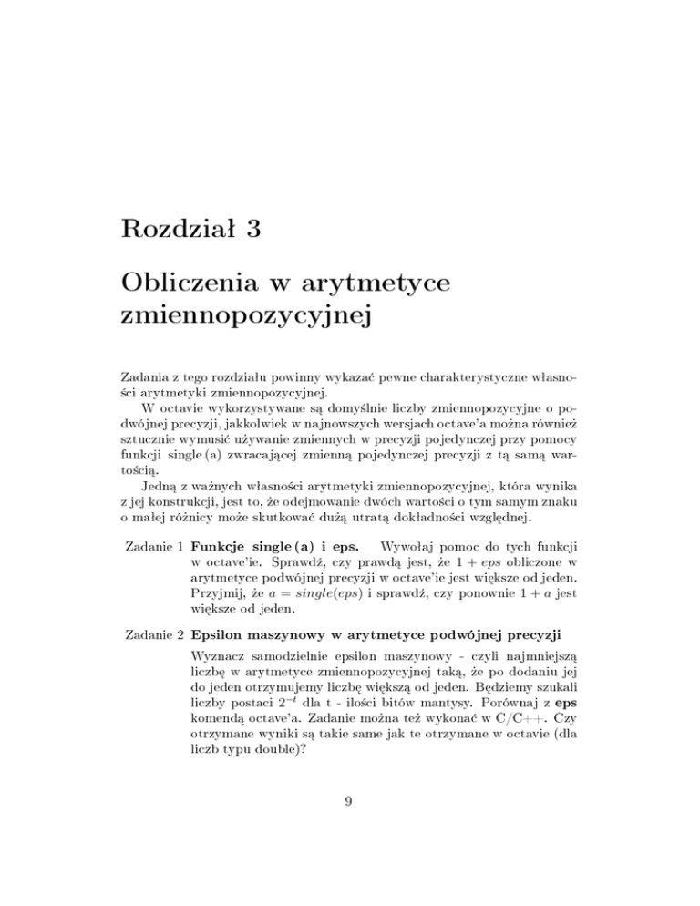 Rozdziaª 3 Obliczenia w arytmetyce zmiennopozycyjnej