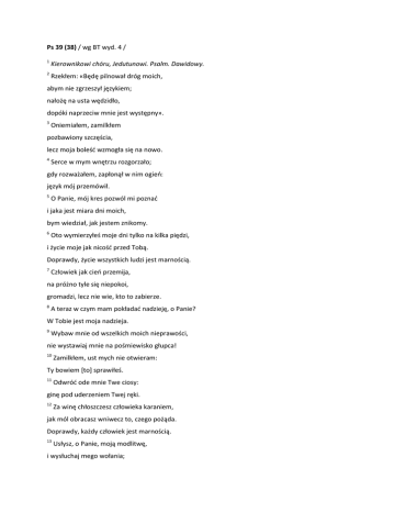 Ps 39 (38) / wg BT wyd. 4 / 1 Kierownikowi chóru, Jedutunowi