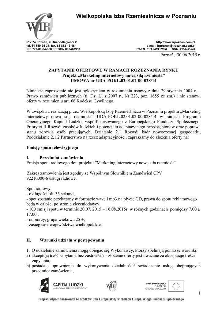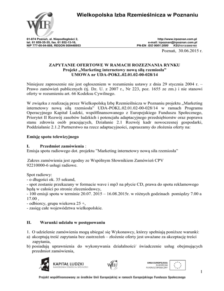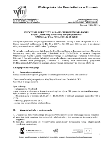 Zapytanie ofertowe - Wielkopolska Izba Rzemieślnicza