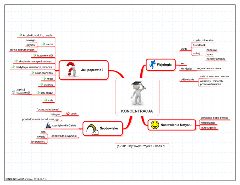 krzy wki, sudoku, puzzle nowego czysta, mineralna nauka zyków 8 szklanek woda gry na instrumentach napojów unikaj: liczenie w dó kawy herbaty czarnej skupienie na czym nudnym Fizjologia medytacja, relaksacja, hipnoza sen kondycja Jak poprawi ? regularne wiczenia kolor czerwony wie e warzywa i owoce mi ta od ywianie przerwy zapisuj ka my l witaminy, minera y, przeciwutleniacze listy spraw cele "przeszkdadzacze" ba agan KONCENTRACJA usu : pewno powiadomienia e-mail, sms, gg Nastawienie Umys u czas tylko dla Ciebie rodowisko tlen wiat o odpowiednie warunki temperatura (c) 2010 by www.ProjektSukces.pl KONCENTRACJA.mmap - 2010-07-11 - siebie i wiara wizualizacje autosugestia