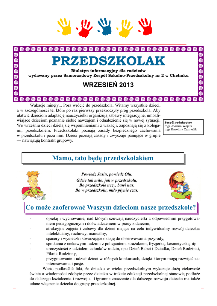 "PRZEDSZKOLAK" wrzesień 2013 - Samorządowy Zespół Szkolno