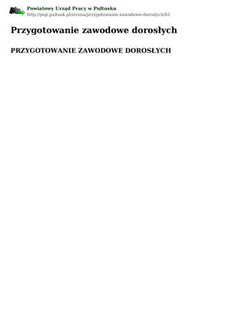 Powiatowy Urząd Pracy w Pułtusku http://pup.pultusk.pl/strona/przygotowanie-zawodowe-doroslych/61 Przygotowanie zawodowe dorosłych PRZYGOTOWANIE ZAWODOWE DOROSŁYCH Przygotowaniu zawodowym dorosłych - oznacza to instrument aktywizacji w formie praktycznej nauki zawodu dorosłych lub przyuczenia do pracy dorosłych, realizowany bez nawiązania stosunku pracy z pracodawcą, według programu obejmującego nabywanie umiejętności praktycznych i wiedzy teoretycznej, zakończonego egzaminem. Starosta inicjuje, organizuje i finansuje z Funduszu Pracy przygotowanie zawodowe dorosłych • bezrobotnych oraz • poszukujących pracy, którzy: • - otrzymują świadczenie socjalne przysługujące na urlopie górniczym lub górniczy zasiłek socjalny, określone w odrębnych przepisach, - uczestniczą w zajęciach centrum integracji społecznej lub indywidualnym programie integracji, o którym mowa w przepisach o pomocy społecznej, - są żołnierzami rezerwy, - pobierają rentę szkoleniową, - pobierają świadczenie szkoleniowe, o którym mowa w art. 70 ust. 6 ustawy z dnia 20 kwietnia 2004 r. o promocji zatrudnienia i instytucjach rynku pracy zwanej dalej ,,ustawą'' w celu uzyskania przez nich kwalifikacji lub umiejętności zawodowych, potwierdzonych dokumentami, o których mowa w art. 53c ust. 3 i art. 53d ust. 3 ustawy. Forma przygotowania zawodowego dorosłych Przygotowanie zawodowe dorosłych odbywa się w formie: 1) praktycznej nauki zawodu dorosłych umożliwiającej przystąpienie do egzaminu potwierdzającego kwalifikacje w zawodzie lub egzaminu czeladniczego; 2) przyuczenia do pracy dorosłych mającego na celu zdobycie wybranych kwalifikacji zawodowych lub umiejętności, niezbędnych do wykonywania określonych zadań zawodowych, właściwych dla zawodu występującego w klasyfikacji zawodów i specjalności dla potrzeb rynku pracy. Przygotowanie zawodowe dorosłych jest realizowane na podstawie umowy w sprawie realizacji przygotowania zawodowego dorosłych zawieranej między starostą a pracodawcą lub między starostą, pracodawcą i instytucją szkoleniową, wpisaną do rejestru prowadzonego przez wojewódzki urząd pracy. Przyuczeniu do pracy dorosłych - oznacza to formę przygotowania zawodowego dorosłych, umożliwiającą uzyskanie wybranych umiejętności lub kwalifikacji zawodowych potwierdzonych zaświadczeniem lu b świadectwem. Przyuczenie do pracy dorosłych kończy się egzaminem sprawdzającym przeprowadzanym przez komisję egzaminacyjną izby rzemieślniczej, instytucję szkoleniową wpisaną do rejestru prowadzonego przez wojewódzki urząd pracy lub inną instytucję uprawnioną do przeprowadzania egzaminów wskazaną przez starostę. Przyuczenie do pracy dorosłych może kończyć się egzaminami potwierdzającymi kwalifikacje w zawodzie, przeprowadzanymi przez okręgową komisję egzaminacyjną, jeżeli program przyuczenia do pracy uwzględnia wymagania określone w podstawie programowej kształcenia w zawodach. Program przyuczenia do pracy dorosłych uwzględnia w szczególności standardy kwalifikacji zawodowych dostępne w bazach danych prowadzonych przez ministra właściwego do spraw pracy lub wymagania określone w podstawie programowej kształcenia w zawodach. Uczestnik przyuczenia do pracy dorosłych, który zdał: • egzamin sprawdzający, o którym mowa w art. 53d ust. 2 ustawy, z wynikiem pozytywnym, otrzymuje zaświadczenie potwierdzające nabyte umiejętności lub • egzaminy, o którym mowa w art. 53d ust. 3 ustawy, otrzymuje świadectwa potwierdzające kwalifikacje w zawodzie. Program przyuczenia do pracy dorosłych uwzględnia w szczególności standardy kwalifikacji zawodowych dostępne w bazach danych prowadzonych przez ministra właściwego do sprawa pracy lub wymagania określone w podstawie programowej kształcenia w zawodach. Praktycznej nauce zawodu dorosłych - oznacza to formę przygotowania zawodowego dorosłych umożliwiającą uzyskanie: a) świadectwa czeladniczego, b) świadectw potwierdzających kwalifikacje w zawodzie, c) dyplomu potwierdzającego kwalifikacje zawodowe po zdaniu egzaminów potwierdzających wszystkie kwalifikacje wyodrębnione w danym zawodzie przez osoby posiadające: • wykształcenie zasadnicze zawodowe albo • zdany egzamin eksternistyczny z zakresu wymagań określonych w podstawie programowej kształcenia ogólnego dla zasadniczej szkoły zawodowej, albo • wykształcenie średnie. Praktyczna nauka zawodu dorosłych kończy się egzaminami potwierdzającymi kwalifikacje w zawodzie, przeprowadzanymi przez okręgową komisję egzaminacyjną, zgodnie z przepisami rozdziału 3b ustawy z dnia 7 września 1991 r. o systemie oświaty (Dz. U. z 2004 r. Nr 256, poz. 2572, z poóźn. zm.) lub egzaminem czeladniczym przeprowadzanym przez komisje egzaminacyjne izb rzemieślniczych, zgodnie z przepisami w sprawie egzaminów na tytuły czeladnika i mistrza w zawodzie. Program praktycznej nauki zawodu dorosłych uwzględnia w szczególności wymagania określone w podstawie programowej kształcenia w zawodach lub standardy wymagań będące podstawą przeprowadzania egzaminu czeladniczego Uczestnik praktycznej nauki zawodu dorosłych, który zdał egzaminy potwierdzające kwalifikacje w zawodzie lub egzamin czeladniczy z wynikiem pozytywnym, otrzymuje odpowiednio świadectwa potwierdzające kwalifikacje w zawodzie lub dyplom potwierdzający kwalifikacje zawodowe albo świadectwo czeladnicze zgodnie z przepisami, o których mowa w art. 53c ust. 2 ustawy. Pracodawca zainteresowany utworzeniem miejsc przygotowania zawodowego dorosłych składa we właściwym powiatowym urzędzie pracy wniosek w sprawie gotowości ich utworzenia. Starosta w terminie miesiąca od dnia otrzymania wniosku, informuje pracodawcę o sposobie jego rozpatrzenia. Starosta, w porozumieniu z wybranym pracodawcą albo z wybranym pracodawcą i wyłonioną instytucją szkoleniową wpisaną do rejestru prowadzonego przez wojewódzki urząd pracy,