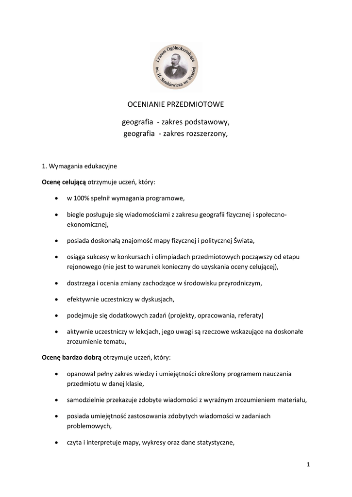 OCENIANIE PRZEDMIOTOWE geografia