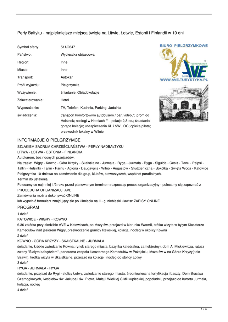 SZLAKIEM SACRUM CHRZEŚCIJAŃSTWA - PERŁY NADBAŁTYKU