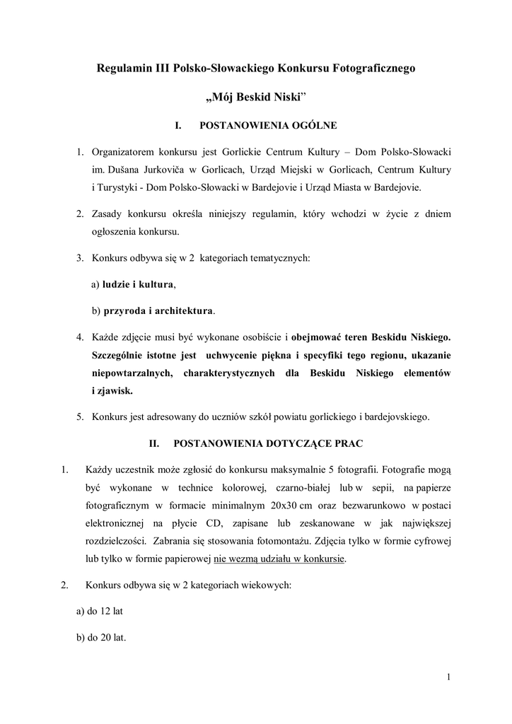 regulamin konkursu mój beskid niski