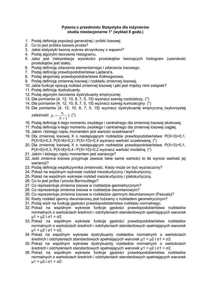 9. Podaj definicję zmiennej losowej i rozkładu zmiennej losowej.