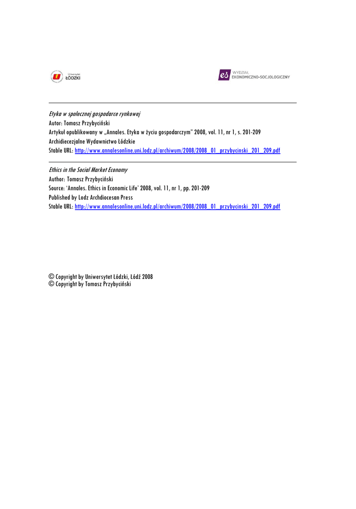 Etyka w społecznej gospodarce rynkowej Ethics in the Social Market