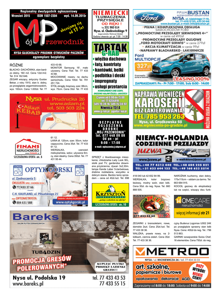 BEZPŁATNE OGŁOSZENIA DROBNE, tel. 77 448 09 09 pn. - pt. od 9.00 - 17.00, [email protected], www.mojprzewodnik.pl