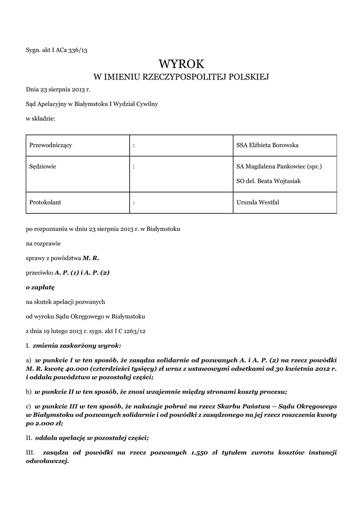 D - Portal Orzeczeń Sądu Apelacyjnego w Białymstoku