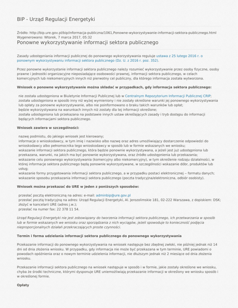 Urząd Regulacji Energetyki Ponowne wykorzystywanie