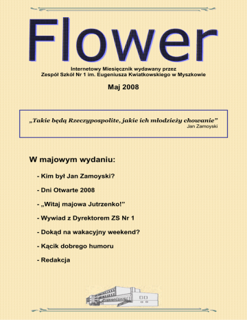 Internetowy Miesięcznik wydawany przez Zespół Szkół Nr 1 im. Eugeniusza Kwiatkowskiego w Myszkowie Maj 2008 „Takie będą Rzeczypospolite, jakie ich młodzieży chowanie” Jan Zamoyski W majowym wydaniu: - Kim był Jan Zamoyski? - Dni Otwarte 2008 - „Witaj majowa Jutrzenko!” - Wywiad z Dyrektorem ZS Nr 1 - Dokąd na wakacyjny weekend? - Kącik dobrego humoru - Redakcja Kim był Jan Zamoyski? Jan Saryusz Zamoyski urodził się w marcu 1542 roku, w Skokówce, w rodzinie kalwińskiej, a jego rodzicami byli Stanisław i Anna Herburtówna. Pierwszą wiedzę Jan nabył w Krasnymstawie, a następnie został wysłany na studia do Paryża, skąd po kilku latach przeniósł się do Strasburga, a następnie do Padwy. W 1563 został wybrany rektorem akademii padewskiej i przeszedł na katolicyzm. Tam też napisał po łacinie swe dzieło o senacie rzymskim „De senatu Romano”, broszurę o starożytnym Rzymie, w której doszukiwał się odniesień zasad konstytucyjnych republiki rzymskiej do Rzeczypospolitej Obojga Narodów. Od początku swych studiów poważnie interesował się polityką. Po powrocie do kraju został mianowany sekretarzem króla Zygmunta II. W 1571 sekretarz ożenił się ze szlachcianką Anną Ossolińską, która zmarła po roku małżeństwa, nie dając mężowi potomka. Po bezpotomnej śmierci Zygmunta Augusta w lipcu 1572 roku, wspólnie ze szlachtą wysunął koncepcję elekcji viritim, czyli wyboru króla przez całą szlachtę. Po krótkim panowaniu Henryka Walezego królem został Stefan Batory, który uczynił Zamoyskiego podkanclerzem koronnym i swym doradcą. W roku 1583 Zamoyski ożenił się z młodziutką, 14-letnią bratanicą króla – Gryzeldą Batorówną. Nowa żona dała hetmanowi dwie córki – Annę oraz Zofię, ale zmarła przy porodzie. W 1592 roku Zamoyski ożenił się po raz czwarty, z Barbarą Tarnowską, która urodziła mu syna Tomasza. Schorowany hetman 3. czerwca 1605 roku zakończył życie. Jego prochy i płyta nagrobna znajdują się w kaplicy Zamoyskich, w Katedrze Zamojskiej. Człowiek ten, to postać humanisty, wszechstronnie wykształconego, któremu nauka, kultura i religia były bliskie sercu. Jego czyny stawiają go na czele wybitnych osobowości w dziejach Polski. Dni Otwarte 2008 We wtorek 29 kwietnia, w Zespole Szkół Nr 1 im. Eugeniusza Kwiatkowskiego, miały miejsce Dni Otwarte. Odwiedzający ZS Nr 1 gimnazjaliści, napotkali na swej drodze wiele ciekawych atrakcji przygotowanych przez uczniów myszkowskiej Jedynki. Wtorkowe Dni Otwarte miały na celu promowanie kierunków kształcenia, które oferuje ZS Nr 1 oraz zachęcenie gimnazjalistów do wstąpienia w szereg społeczności uczniowskiej naszej szkoły. Odwiedziły nas trzy gimnazja z Myszkowa (Gimnazjum Nr 1, Gimnazjum Nr 2, Gimnazjum Nr 5) oraz gimnazjum z Koziegłów, Lgoty Górnej, Niegowy, Włodowic i sąsiednich Żarek. W tym wyjątkowym dniu zorganizowano kawiarenkę, gdzie można było skosztować ciasta i napić się gorącej kawy bądź herbaty. Pierwszoklasiści z poświęceniem przygotowali punkty reklamujące swoje kierunki. Często znajdowały się w nich rekwizyty symbolizujące dany zawód. Najciekawszym stanowiskiem okazało się miejsce Technikum Budowlanego, gdzie widoczne były różnorakie akcesoria, od podręczników po cegły oraz kielnie. Nie brakowało również stroju roboczego budowlańca. Na korytarzu była okazja zobaczyć m.in. stanowiska Technikum Logistycznego, Ochrony Środowiska, Elektrycznego oraz Technikum Usług Fryzjerskich. Odwiedzający mieli również możliwość zapoznać się z zawodami Zasadniczej Szkoły Zawodowej. Uczniowie kl. I BO z prof. Marią Oleksiak oraz kl. I LE pod opieką prof. Anny Stelmach zaprezentowali kilkuminutową debatę pt. „Który z zawodów jest bardziej atrakcyjny – technik logistyk, czy technik budownictwa?”. Dzięki burzliwej dyskusji klas, gimnazjaliści mogli dowiedzieć się, ile zarabiają logistycy, a ile budowlańcy oraz gdzie szukać pracy z wykształceniem logistycznym bądź dlaczego warto wybrać budownictwo. Na koniec poznaliśmy wniosek płynący z uczniowskiej debaty: „Zarówno budownictwo, jak i logistyka są niezmiernie istotnymi zawodami na rynku pracy”. Kolejną atrakcją przygotowaną przez ZS Nr 1 był rozegrany na sali gimnastycznej „Turniej dwójek siatkarskich”, w którym wystartowało aż osiem drużyn. Najwyżej na podium stanęły Dagmara Maciąg i Ewa Adamczyk, na srebro zasłużyli Dariusz Gocek i Dawid Walo, natomiast na trzecim miejscu znaleźli się Karolina Żelezik i Marek Woliński. Nad sprawnym przebiegiem gry pracowali nauczyciele wychowania fizycznego w składzie: prof. Aneta Czerniak, prof. Marta Kluza, prof. Mariola Majewska oraz prof. Krzysztof Gradzik. Osobiście uważam, iż naprawdę warto organizować więcej imprez, które promowałyby naszą szkołę, niekoniecznie tylko w czasie dni otwartych. Mogłyby to być również olimpiady przedmiotowe, zawody sportowe, pikniki, czy też festyny. Witaj majowa Jutrzenko! Będąca wynikiem dążeń do naprawy stosunków wewnętrznych w Polsce po I rozbiorze, ustalająca podstawy ustroju nowożytnego w państwie – na Sejmie Czteroletnim, w 1791 roku została uchwalona Ustawa Rządowa z dnia 3 maja. Głównymi autorami Konstytucji byli: Stanisław August Poniatowski, Ignacy Potocki, Stanisław Małachowski oraz Hugo Kołłątaj. W bieżącym roku przypadła 317. rocznica uchwalenia Konstytucji Majowej. ZS Nr 1 nie zapomniał o wydarzeniu, upamiętniającym powołanie pierwszej w Europie konstytucji. Uczniowie klas: I BO, I TF i II TF oraz II TM i III EK pod przewodnictwem prof. Agnieszki Bugały, prof. Magdaleny Merty, prof. Iwony Skorek, na ten szczególny dzień, przygotowali akademię przypominającą dzieje naszej Ojczyzny. Wywiad z Dyrektorem Zespołu Szkół Nr 1 Maj, dla Dyrektora oraz Szanownego Grona Pedagogicznego ZS Nr 1, to wbrew pozorom czas wysiłków, gdyż w grę wchodzi przygoto