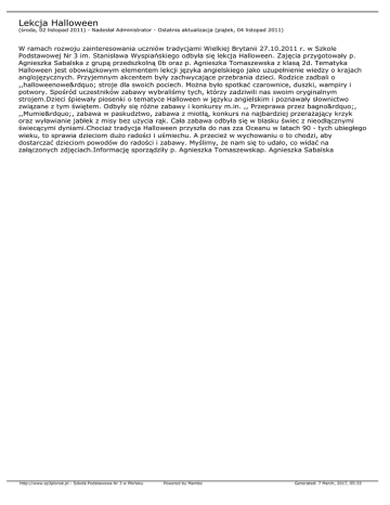 Lekcja Halloween - Szkoła Podstawowa Nr 3 w Płońsku
