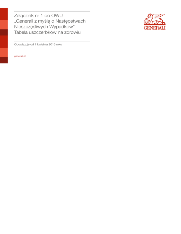 Załącznik nr 1 do OWU „Generali z myślą o Następstwach