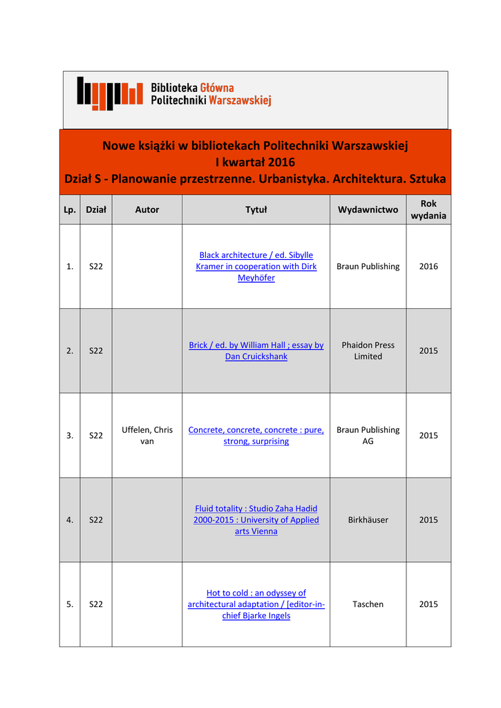 Nowe książki w bibliotekach Politechniki Warszawskiej I kwartał