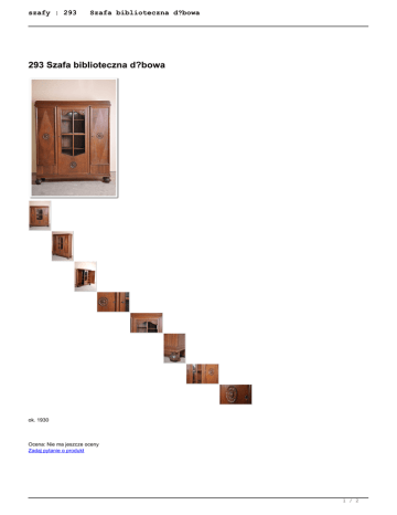 szafy : 293 Szafa biblioteczna d?bowa 293 Szafa biblioteczna d?bowa ok. 1930 Ocena: Nie ma jeszcze oceny Zadaj pytanie o produkt 1 / 2 szafy : 293 Szafa biblioteczna d?bowa Szczegó?y produktu Konstrukcja nierozbieralna z sosny i p?yty stolarskiej okleinowana fornirem d?bowym. Szafa trzydrzwiowa, drzwi zewn?trzne w??sze i pe?ne, za nimi po 4 pó?ki. Obrys drzwi podkre?lony pó?okr?g?? listw?, u?o?enie forniru tworzy rysunek rombu, w ?rodku rze?biona rozeta, w cz??ci dolnej ??obkowana powierzchnia. Drzwi ?rodkowe przeszklone z krzy?uj?cymi si? szprosami; cz??? przeszklona zwie?czona floraln? p?askorze?b? z wolutami i li??mi akantu. P?aszczyzny drzwi zdobione rze?bionymi rozetami; wieniec górny profilowany. Za drzwiami 4 pó?ki. Wn?trza i pó?ki fornirowane d?bem wewn?trzne strony drzwi mahoniem. Nogi przednie w formie kanelurowanych, odwróconych kielichów, tylne – kloce. Zamki oryginalne. Szafa zosta?a odnowiona, drobne uszkodzenia zosta?y naprawione, a powierzchnie zakonserwowane woskiem pszczelim. Interesuj?cy, praktyczny mebel o pi?knym ciep?ym kolorze starego d?bu, szlachetnej matowej powierzchni, spokojnej architekturze z wywa?onym zdobnictwem. Sprawdzi si? w u?ytkowaniu, ozdobi mieszkanie i zadowoli gusty jego mieszka?ców. wys. 187cm szer. 155 cm g??b.41 cm 2 / 2 Powered by TCPDF (www.tcpdf.org)