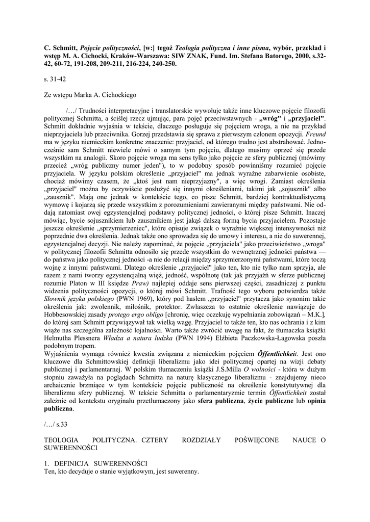 C. Schmitt, Pojęcie polityczności, [w:] tegoż Teologia polityczna i