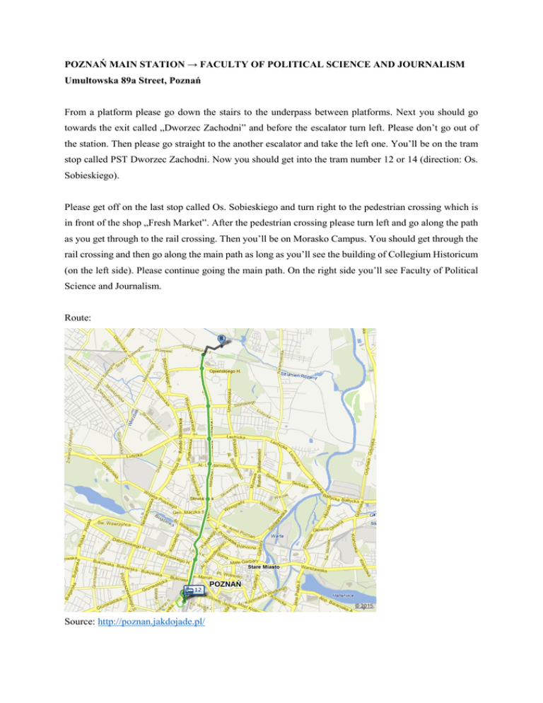 POZNAŃ MAIN STATION → FACULTY OF POLITICAL