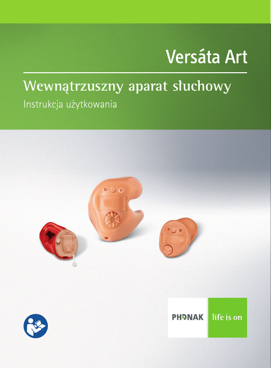 Wewnątrzuszny aparat słuchowy Instrukcja użytkowania Spis treści 1. Witamy 4 2. Ważne informacje: Prosimy o zapoznanie się z nimi przed uruchomieniem aparatów słuchowych po raz pierwszy 6 Ostrzeżenia o zagrożeniach 6 Informacje o zabezpieczeniu produktu 7 3. Opis aparatu słuchowego 10 4. Instrukcje obsługi aparatu krok po kroku 13 Krok 1. Zapoznanie się z aparatem słuchowym 13 2 Krok 2. Przygotowanie baterii 15 Krok 3. Wkładanie baterii 16 Krok 4. Włączanie aparatu słuchowego 16 Krok 5. Wkładanie aparatu słuchowego 18 Krok 6. Regulowanie poziomu głośności w aparacie wewnątrzusznym 20 Krok 7. Wybieranie programu w aparacie wewnątrzusznym 21 Krok 8. Wyjmowanie aparatu słuchowego 22 Krok 9. Wyłączanie aparatu słuchowego 24 Krok 10. Wymiana baterii 24 5. Pielęgnacja i konserwacja 25 6. Rozwiązywanie problemów 28 7. Akcesoria bezprzewodowe i systemy FM 29 8. Informacja o gwarancji 31 9. Informacje na temat symboli i ich objaśnienia 32 3 1. Witamy Prezentowany aparat słuchowy to szwajcarski produkt wysokiej jakości. Został on opracowany przez firmę Phonak, jednego ze światowych liderów w dziedzinie technologii systemów słuchowych. Aparat ten został wyposażony w najnowocześniejszą, dostępną obecnie na rynku, cyfrową technologię wspomagającą słyszenie. Firma Phonak wdrożyła tę technologię w łatwych w obsłudze aparatach słuchowych. Zastosowanie wielu automatycznych funkcji zapewnia najwyższą jakość dźwięku, najlepsze rozumienie mowy oraz optymalny komfort słyszenia w niemal wszystkich sytuacjach słuchowych. Jesteśmy przekonani, że niezwykłe możliwości prezentowanego aparatu słuchowego wniosą wymierne korzyści do codziennego życia każdego pacjenta. Prosimy o dokładne zapoznanie się z niniejszą instrukcją użytkowania, aby móc w pełni korzystać ze wszystkich możliwości, jakie oferuje Twój nowy aparat słuchowy. Właściwe użytkowanie i pielęgnacja pozwoli Ci cieszyć się nim przez wiele lat. 4 W przypadku jakichkolwiek pytań należy skonsultować się z protetykiem słuchu. Phonak - life is on www.phonak.pl 0459 5 2.Ważne informacje Przed użyciem aparatu prosimy przeczytać informacje znajdujące się na następnych stronach. 2.1Ostrzeżenia o zagrożeniach Korzystaj wyłącznie z aparatu słuchowego, który został zaprogramowany przez protetyka słuchu specjalnie dla Ciebie. Inne aparaty mogą być nieskuteczne, a w pewnych sytuacjach mogą spowodować uszkodzenie słuchu. Nie wprowadzaj do aparatów słuchowych zmian ani modyfikacji, które nie zostały jednoznacznie zatwierdzone przez firmę Phonak. Zmiany takie mogą uszkodzić słuch lub aparat słuchowy. Baterie do aparatów słuchowych są toksyczne! Należy przechowywać je z dala od dzieci i zwierząt domowych. W przypadku połknięcia baterii, natychmiast skonsultuj się z lekarzem! 6 Aparaty słuchowe działające w trybie mikrofonu kierunkowego redukują dźwięki z otoczenia. Musisz zdawać sobie sprawę, że dochodzące z tyłu sygnały ostrzegawcze i dźwięki wydawane na przykład przez samochód są częściowo lub całkowicie tłumione. Aparat słuchowy zawiera niewielkie części, które mogą zostać połknięte przez dzieci. Urządzenia zewnętrzne mogą być podłączane pod warunkiem, że zostały przetestowane zgodnie z odpowiednimi normami IECXXXXX. Używaj wyłącznie akcesoriów zatwierdzonych przez firmę Phonak. 2.2 Informacje o zabezpieczeniu produktu Nigdy nie zanurzaj aparatu słuchowego w wodzie! Chroń urządzenie przed nadmierną wilgocią. Zawsze zdejmuj aparat słuchowy przed myciem, kąpielą lub pływaniem. 7 2. Wazne informacje Chroń aparat słuchowy przed wysoką temperaturą (nie zostawiaj go w pobliżu okna czy w samochodzie). Do osuszenia aparatu słuchowego nie wolno używać mikrofalówki ani innych urządzeń grzewczych. Zapytaj swojego protetyka słuchu sposoby osuszania. Kiedy nie korzystasz z aparatu słuchowego, pozostaw komorę baterii otwartą, aby umożliwić odparowanie wilgoci. Zawsze upewnij się, czy aparat słuchowy został po użyciu dokładnie osuszony. Przechowuj aparat w bezpiecznym, suchym i czystym miejscu. Nie upuszczaj aparatu! Zrzucenie aparatu na twardą powierzchnię może go uszkodzić. Zawsze używaj tylko nowych baterii do aparatu. Zużyte baterie można zwrócić protetykowi słuchu. 8 Jeśli aparat słuchowy nie będzie używany przez dłuższy czas, wyjmij z niego baterie. Naświetlanie promieniami X (Rentgen) może wpływać niekorzystnie na działanie aparatu słuchowego. Zawsze zdejmuj aparat przed naświetlaniem i pozostawiaj go poza miejscem badania. Nie korzystaj z aparatu w miejscach, w których stosowanie urządzeń elektronicznych jest zabronione. 9 3. Opis aparatu słuchowego W niniejszej instrukcji użytkowania opisane zostały trzy modele aparatów słuchowych: CIC/MC umieszczane głęboko w przewodzie słuchowym, modele ITC/HS umieszczane w przewodzie słuchowym lub w małżowinie usznej oraz modele pełnomałżowinowe FS umieszczane w małżowinie usznej. Na kolejnych stronach znajdują się oznakowane ilustracje, za pomocą których łatwo rozpoznasz swój aparat słuchowy. Uwaga: konkretny model może nie obsługiwać wszystkich funkcji opisanych na następnych stronach; niektóre z nich to funkcje opcjonalne. Protetyk słuchu udzieli informacji na temat rozmiaru baterii wymaganych w aparacie słuchowym. 10 Model CIC/MC m n o l p k j q j Indywidualna obudowa k Słuchawka (wyjście dźwiękowe) i filtr przeciwwoskowinowy l Komora baterii z funkcją włączania/wyłączania m Przełącznik programów (opcja)* n Osłonięte wloty mikrofonów (dwa w przypadku modeli z technologią kierunkową) o Uchwyt do wyjmowania (CIC/MC) pOznaczenie prawego lub lewego aparatu (prawy = kolor czerwony, lewy = kolor niebieski) q Otwór wentylacyjny * Regulator głośności dostępny jest również jako opcja nie został on tutaj pokazany. 11 3. Opis aparatu słuchowego Model ITC/HS Mo