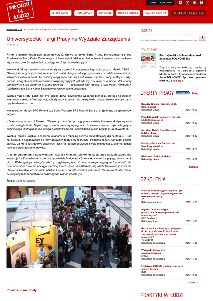 Uniwersyteckie Targi Pracy na Wydziale Zarządzania | Młodzi