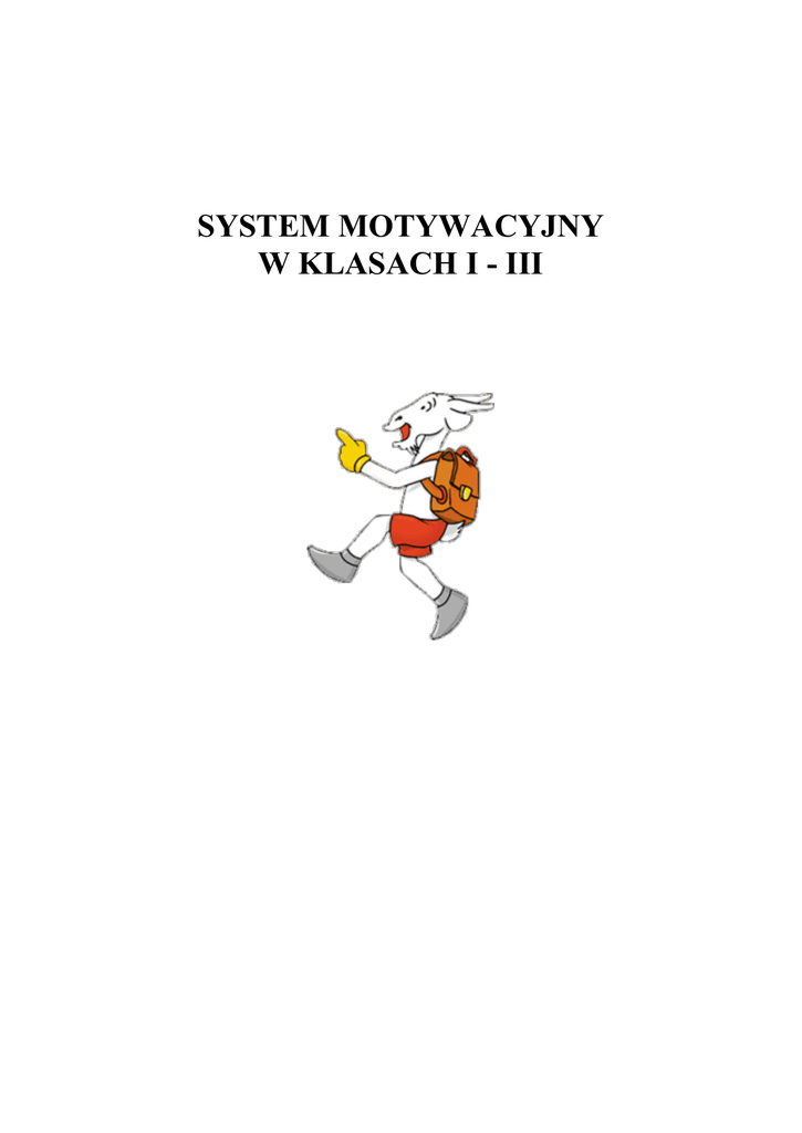 SYSTEM MOTYWACYJNY W KLASACH I - III MOTYWACJA UCZNIA DO NAUKI 1. Pojęcie motywacji 2. Procesy motywacyjne 3. Rodzaje motywacji 4. Motywowanie ucznia w klasach I - III Pojęcie motywacji Motywacja rozumiana jest w literaturze, jako: stan gotowości istoty rozumnej do podjęcia określonego działania, to wzbudzony potrzebą zespół procesów psychicznych i fizjologicznych określający podłoże zachowań i ich zmian, to wewnętrzny stan człowieka mający wymiar atrybutowy. Procesy motywacyjne Procesy motywacyjne: ukierunkowują zachowanie jednostki na osiągnięcie określonych, istotnych dla niej stanów rzeczy, kierują wykonywaniem pewnych czynności tak, aby prowadziły do zamierzonych wyników (zmiana warunków zewnętrznych, zmiana we własnej osobie, zmiana własnego położenia). jeśli człowiek jest świadomy wyniku wykonywanych czynności, wówczas ten wynik nazywa się celem. proces motywacyjny składa się z zespołu pojedynczych motywów. motywem nazwać zaś można przeżycie pobudzające człowieka do działania lub powstrzymujące go, lub przeszkadzające jego wykonaniu. Proces motywacyjny ma na celu: wzbudzanie energii; ukierunkowywanie wysiłku na cel; selektywność uwagi w stosunku do bodźców – zwiększenie wrażliwości na bodźce istotne; zorganizowanie reakcji w zintegrowany wzorzec; kontynuowanie czynności, dopóki warunki, które ją zapoczątkowały nie ulegną zmianie; pobudzenie emocjonalne– uczucia dodatnie; (w przypadku realizacji zamierzeń) lub ujemne (w przypadku niespełnienia). RODZAJE MOTYWACJI Rodzaje motywacji zewnętrzna wewnętrzna pozytywna negatywna MOTYWACJA WEWNĘTRZNA Wewnętrzna – aktywizacja następuje, gdy człowiek dąży do zaspokojenia swoich potrzeb Motywacja wewnętrzna – "tendencja do podejmowania i kontynuowania działania ze względu na jego treść. Cechą określającą motywację wewnętrzną jest ciekawość, czynnikami motywującymi są właściwości będące wynikiem wzajemnego porównywania bodźców docierających do jednostki aktualnie bądź zakodowanych w strukturach pamięciowych: wieloznaczność, niewyraźność, nowość, złożoność, dziwność, niezgodność. MOTYWACJA ZEWNĘTRZNA polega na wzbudzeniu potrzeb przez stosowanie kar i nagród, informowaniu o możliwościach zawartych w różnego rodzaju sytuacjach i manipulowaniu tymi możliwościami Motywacja zewnętrzna – "tendencja do podejmowania i kontynuowania działań ze względu na pewne konsekwencje, do których one prowadzą (uzyskanie nagrody lub innej uchwytnej korzyści), związana z poczuciem, że przyczyna i kontrola działania ma charakter zewnętrzny i nie jest zależna od jednostki". MOTYWACJA NEGATYWNA zwana ujemną, to mechanizm oparty na różnego rodzaju karach, związany z zachowaniem typu „dążenie od”, który opiera się na unikaniu. Im bliższa jest kara, tym bardziej widoczny jest unik. powoduje ona u pracownika lęk przed utratą m.in. stanowiska, wysokości dotychczasowej pensji bądź nawet pracy, a tym samym mobilizuje do efektywniejszych działań, głównie w celu uniknięcia kary. MOTYWACJA POZYTYWNA motywacja pozytywna, zwana dodatnią, oparta jest na dodatnich wzmocnieniach. Związana z zachowaniem „dążenia do”, które jest tym silniejsze im bliższa jest droga do zapowiedzianej nagrody. Motywacja pozytywna ma umożliwić człowiekowi osiągnięcie lepszego niż dotychczas poziomu zaspokojenia potrzeb. MOTYWOWANIE UCZNIA W KLASACH I - III Czynniki wpływające na powstanie sytuacji motywacyjnych u ucznia Bodźce motywujące uczniów do nauki szkolnej mogą mieć źródła zarówno wewnętrzne, jak i zewnętrzne. Właściwy dobór bodźców zewnętrznych może spowodować zmianę stosunku ucznia do nauki - wtedy będzie działał u niego mechanizm bodźców wewnętrznych (związanych z zainteresowaniami, ambicjami, planami dalszego kształcenia się) wzmacniany bodźcami zewnętrznymi w postaci nagrody, wyróżnienia, czy pochwały za dobre wyniki. Kształcenie motywacji uczenia się jest niezbędne, gdyż człowiek: „musi stale uczyć się, aby żyć i ciągle stawać się na nowo". Największe korzyści daje motywacja wewnętrzna i pozytywna, która powstaje pod wpływem działania takich motywów, jak: ambicja, zainteresowania, dążenia na przyszłość, potrzeby, pragnienia, których spełnienie przynosi radość, przyjemność i satysfakcję. Stąd też jedno z najważniejszych zadań edukacji szkoły podstawowej należy uznać kształtowanie u uczniów trwałych i silnych motywów uczenia się jako podstawy do dalszego samokształcenia. Bazując na naturalnej u uczniów ciekawości świata, nauczyciel powinien prowadzić zajęcia w taki sposób, aby prowadzone lekcje wywoływały zainteresowanie i chęć pogłębiania wiedzy, były oceniane przez uczniów jako „ciekawe", „warte" aktywnego uczestniczenia i dodatkowego przygotowywania się do zajęć. Cel motywacji ucznia do nauki Uczeń zmotywowany pozytywnie: nabiera pewności siebie, jest aktywny, zainteresowany, dociekliwy, jest ambitny, ma zaspokojona potrzebę wykonywania zadań przynoszących satysfakcje, radośc, przyjemność, osiąga lepsze wyniki w nauce, nabiera chęci do pracy, nauki, samodoskonalenia. Rodzaj wyróżnienia Forma realizacji n-l na forum klasy udziela uczniowi Pochwała wychowawcy na forum klasy pochwały, wpisuje pochwałę do zeszytu uwag i spostrzeżeń Pochwała na forum szkoły przez dyrektora dyrektor udziela pochwały ustnej uczniowi podczas apeli porządkowych uczeń otrzymuje dyplom za 100% frekwencję - wychowawca klasy Dyplom za wzorową frekwencję uczeń otrzymuje nagrodę rzeczową za 100% frekwencję na całym poziomie edukacyjnym - dyrektor szkoły Dyplom "Bezpiecznej klasy" oraz maskotkę Koziołka Matołka otrzymuje Tytuł "Bezpiecznej klasy" klasa, która zdobędzie najwięcej pkt w konkursie "Bezpieczna klasa" na koniec I półrocza i na koniec roku szkolnego uczniowie otrzymują dyplomy za udz